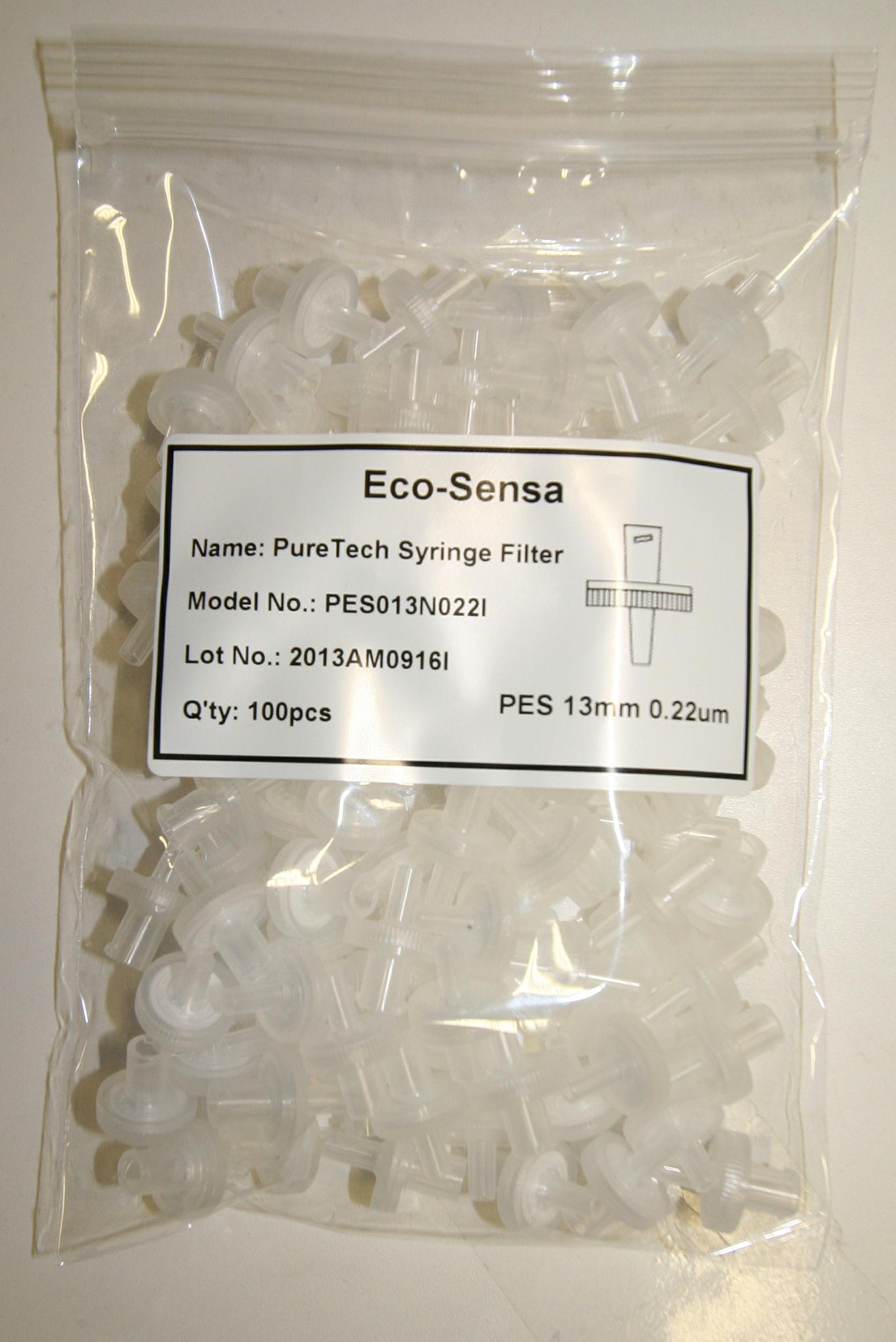 Eco-sensa® PES 13mm 0.22um Syringe Filter w/ PP housing- 100 pcs