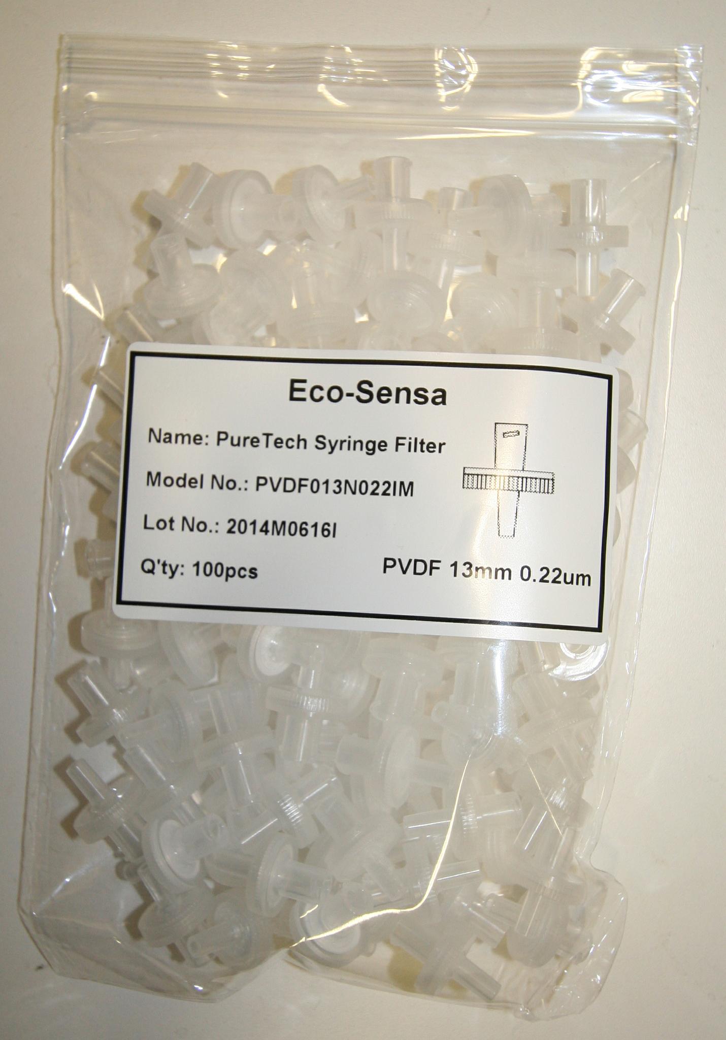 Eco-Sensa® Syringe filters are purpose-built with features designed to bring the highest levels of performance and purity to your research. We incorporate the membranes from milipore to offer separation and purification solutions for the majority of your laboratory needs. PVDF (Polyvinylidene fluoride) – extremely low protein-binding; for filtration of non-aggressive aqueous and mild organic solutions, or were maximizing protein recovery is important.