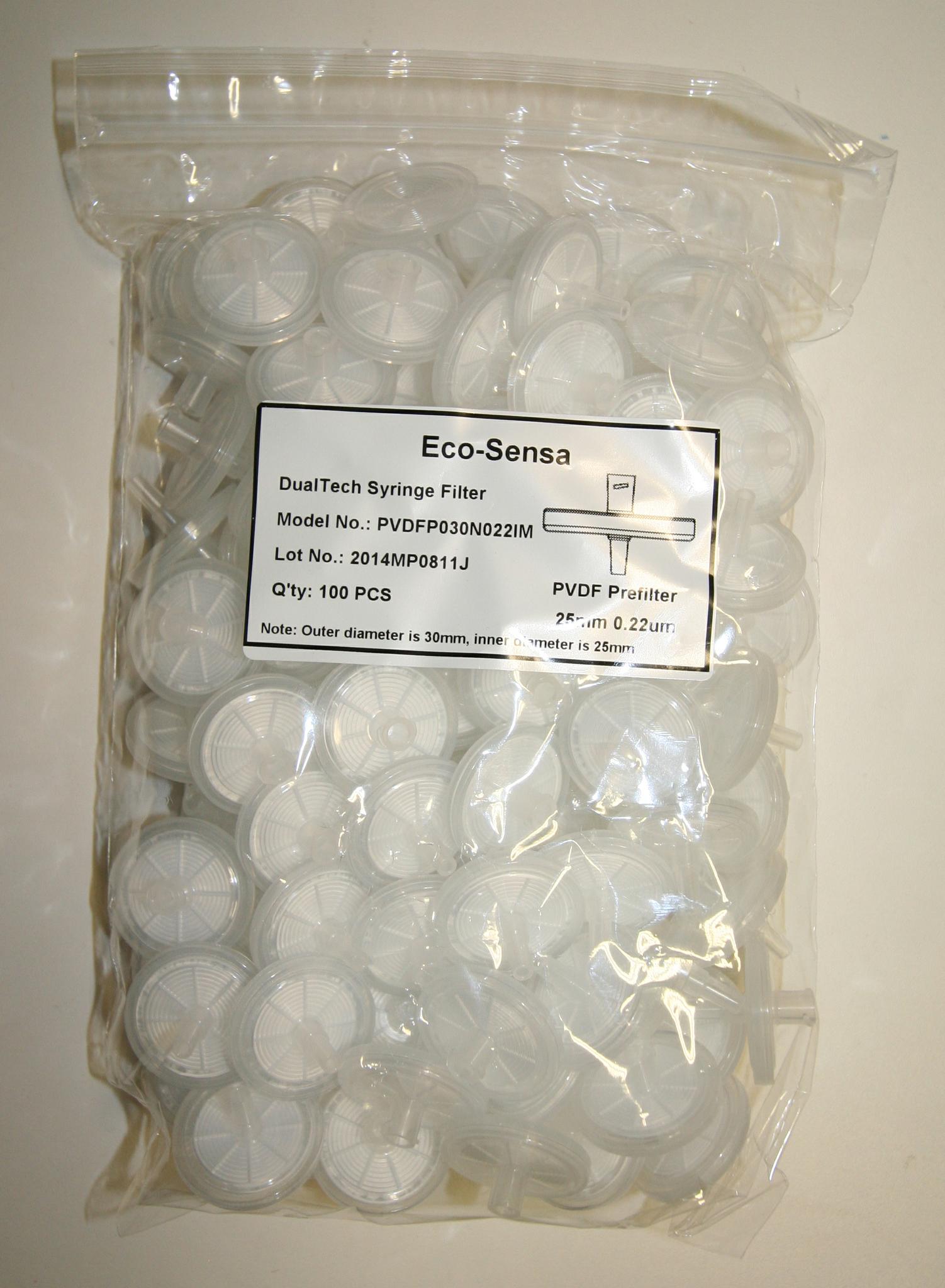 Eco-sensa® PVDF 30mm 0.22um Syringe Filter w/ PP housing- 100 pcs