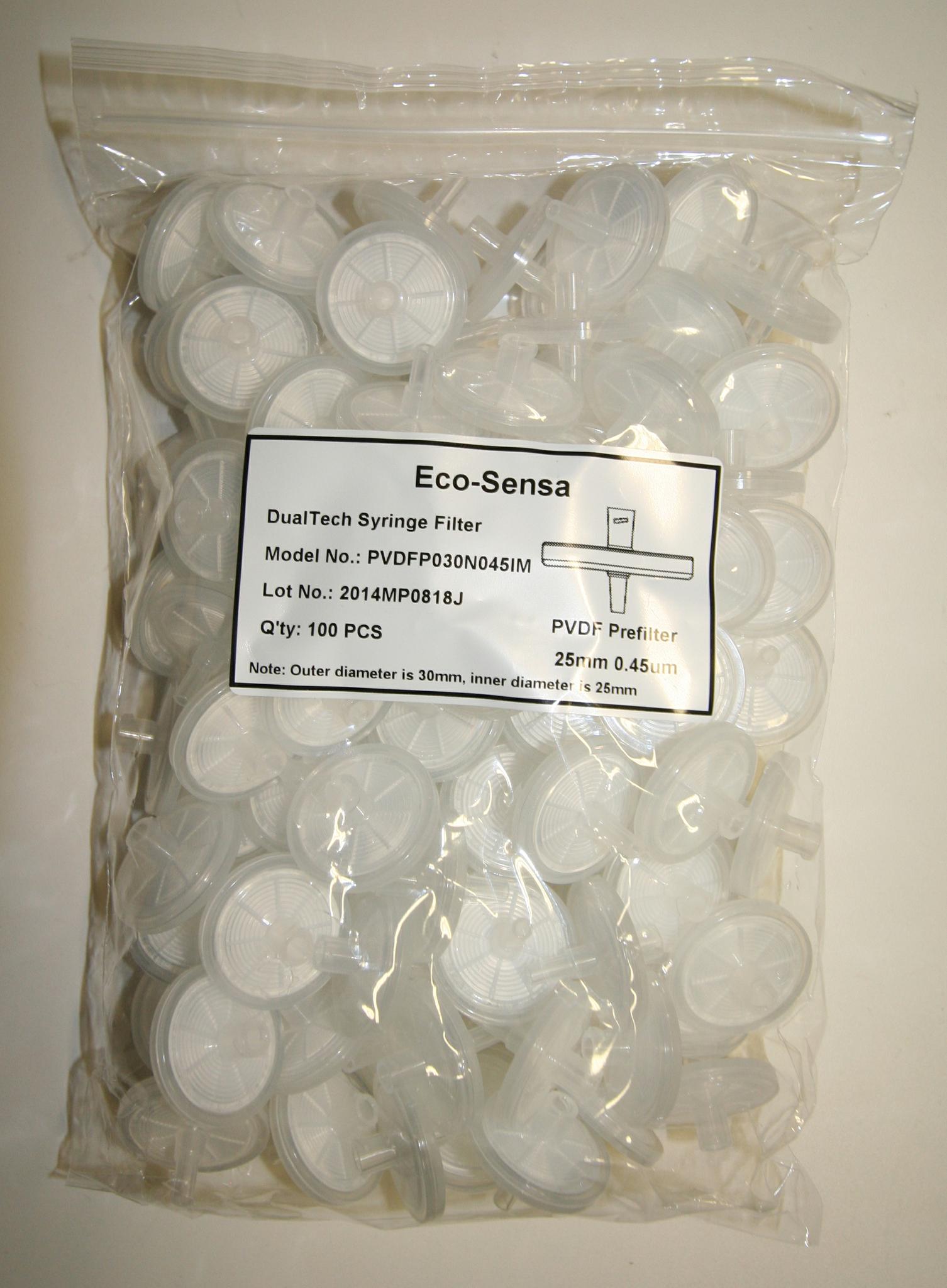 Eco-sensa® PVDF 30mm 0.45um Syringe Filter w/ PP housing- 100 pcs